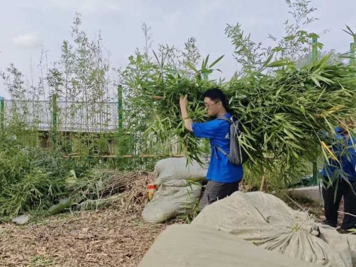 圖為團隊成員幫助竹文化公園工人搬運竹子 魏聖杰攝