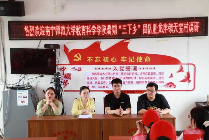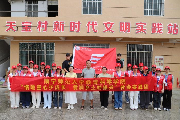 7月13日,南寧師范大學(xué)教育科學(xué)學(xué)院2025年暑期“三下鄉(xiāng)”志愿服務(wù)團(tuán)隊(duì)在團(tuán)委書(shū)記蔣歡老師、輔導(dǎo)員周芳老師和輔導(dǎo)員梁精泉老師帶領(lǐng)下,滿懷期待地奔赴實(shí)踐地點(diǎn)——廣西河池市羅城仫佬族自治縣龍岸鎮(zhèn)天寶村,正式開(kāi)啟以“情暖童心護(hù)成長(zhǎng),愛(ài)潤(rùn)?quán)l(xiāng)土助振興”為主題的暑期社會(huì)實(shí)踐活動(dòng)。