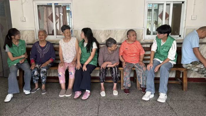 圖為實踐隊員通過與老年公寓的老人聊天,了解本次宣講的收獲。許心雨供圖