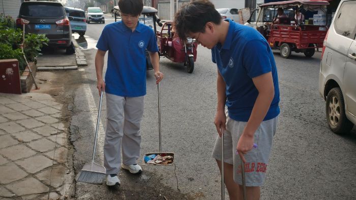 志愿者的加入,讓這份清爽多了份青春的助力。他們帶著掃帚清掃村道上的泥土,那是農(nóng)戶從田里帶回的“大地印記”;把村舞臺(tái)角落的雜物清出去,讓傍晚來(lái)看節(jié)目的鄉(xiāng)親們有處落腳。門口乘涼的村民們看著這一幕,不時(shí)點(diǎn)頭稱贊,一位老人笑著說(shuō):“這些理工大的同學(xué)們,手腳勤快,把村里拾掇得更亮堂了。”當(dāng)村民收工回家,看到整潔的村道和敞亮的舞臺(tái),臉上的疲憊便淡了幾分,干活的勁頭也更足了。