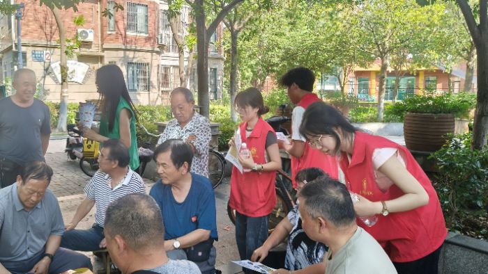 圖為團(tuán)隊(duì)成員對(duì)社區(qū)老年人進(jìn)行反詐宣傳。王珅,任楠,陳敏,潘潞供圖