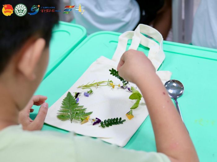 經(jīng)過(guò)一番努力,南澳的草木終于在孩子們的帆布袋上綻放出了別樣的光彩。鋸齒狀的蕨葉、星星點(diǎn)點(diǎn)的花瓣、錯(cuò)綜復(fù)雜的網(wǎng)狀葉脈,這些既是大自然賦予的獨(dú)特肌理,也是孩子們奇思妙想的體現(xiàn)。每一個(gè)帆布袋都成為了獨(dú)一無(wú)二的藝術(shù)品,承載著孩子們的快樂(lè)和對(duì)美的理解。