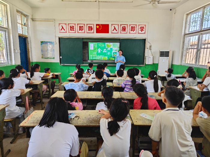 食品添加劑都是“敵人”嗎?變質(zhì)過期食品還能吃嗎?怎樣才能均衡營養(yǎng)健康成長呢?實(shí)踐團(tuán)分別走進(jìn)龍王莊鎮(zhèn)西屯村村委辦公室和楊集鄉(xiāng)東桑莊村小學(xué),為孩子們帶來一場(chǎng)別開生面的食品知識(shí)科普課堂。團(tuán)隊(duì)成員們生動(dòng)形象地向小朋友們普及食品添加劑、食物毒素、食品保質(zhì)期以及平衡膳食寶塔等知識(shí)。在講到變質(zhì)食品的識(shí)別,團(tuán)隊(duì)成員帶著大家找“蛛絲馬跡”——看色澤、聞氣味、摸質(zhì)地;講到六大營養(yǎng)素的時(shí)候,志愿者邊說邊比劃:“碳水化合物是‘能量加油站’,米飯、面條里全是它,為日常活動(dòng)供能;維生素則像代謝調(diào)節(jié)的‘助手’,新鮮蔬果是它們的主要‘藏身地’,缺了哪一種,身體機(jī)能都可能打折扣”等等。為增加大家的參與感,團(tuán)隊(duì)成員們現(xiàn)場(chǎng)指導(dǎo)小朋友計(jì)算食品保質(zhì)期、查看食品配料表,通過互動(dòng)小游戲和問答環(huán)節(jié),讓大家在輕松愉快的氛圍中,掌握更多實(shí)用的食品安全與營養(yǎng)知識(shí),食品安全意識(shí)和自我保護(hù)能力得到顯著提高。