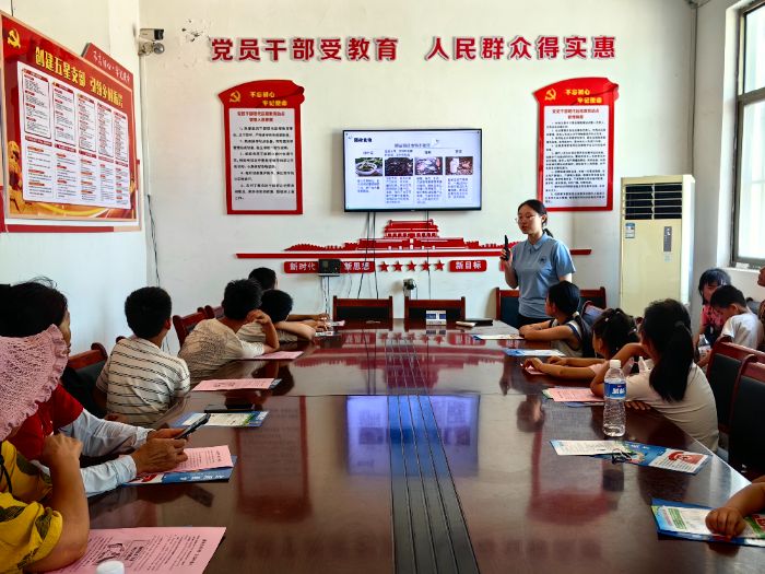 圖為實(shí)踐服務(wù)隊(duì)在西屯村村委會(huì)為村民和孩子們宣講。姬皓真供圖