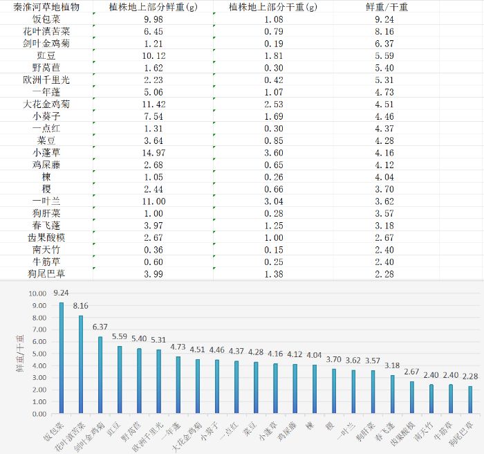 此外,我們還觀察到其他植物如一年蓬和小蓬草等的鮮重與干重比例也較高,這可能暗示著它們同樣具有較高的含水量和對濕潤環(huán)境的偏好。另一方面,狗尾巴草和小葵子等植物的鮮重與干重比例較低,顯示出它們可能更加適應(yīng)干燥或資源有限的環(huán)境。