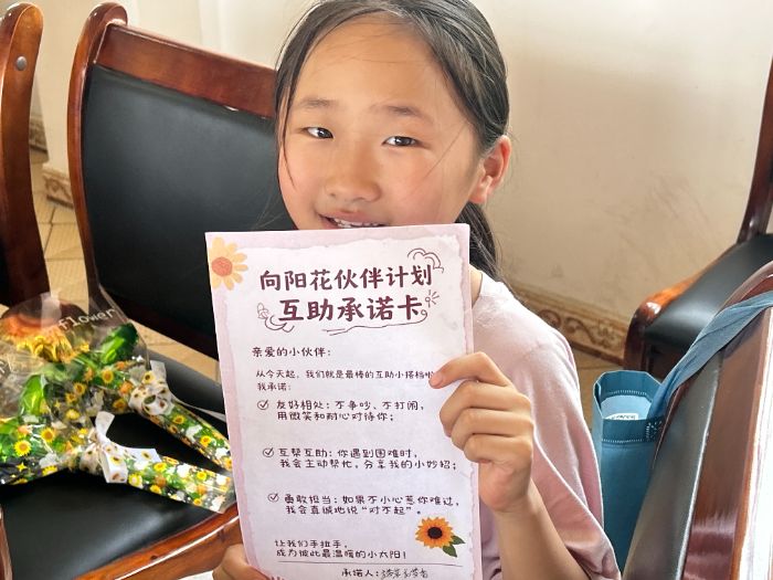 同伴共護(hù)同行:從“個(gè)體自護(hù)”到“群體守護(hù)” “向陽(yáng)花伙伴計(jì)劃”承諾紙上,11歲孩子的字跡雖帶著孩童的稚嫩,筆畫(huà)間卻透著格外的認(rèn)真。這個(gè)曾帶領(lǐng)小組完成模擬欺凌化解的孩子,在落筆簽名的瞬間,已悄然從“學(xué)習(xí)者”轉(zhuǎn)變?yōu)?ldquo;踐行者”。這樣的轉(zhuǎn)變并非個(gè)例——當(dāng)每個(gè)孩子都在承諾紙上鄭重簽下姓名,從“旁觀者”到“守護(hù)者”的身份蛻變便有了具象的寄托,欺凌行為也隨之失去了滋生的土壤。
