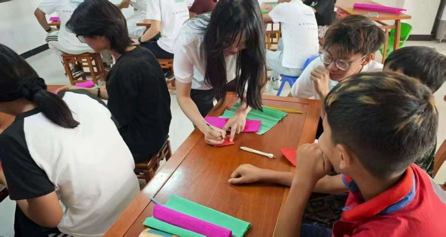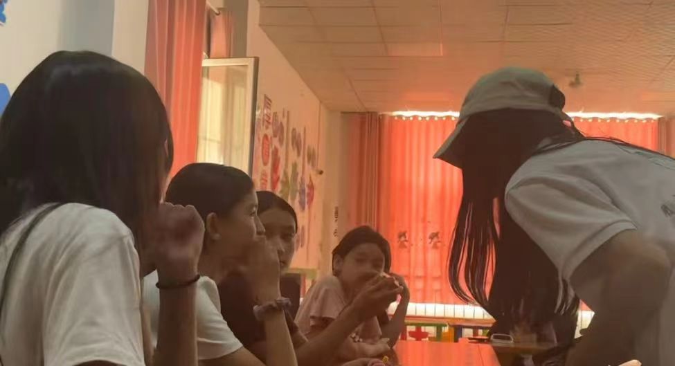 上午11時(shí),實(shí)踐團(tuán)與社區(qū)完成對接后,活動(dòng)正式開啟。志愿者以手工折玫瑰花為起始,耐心傳授折紙技巧。在志愿者的細(xì)致指導(dǎo)下,一張張彩紙逐步變成了嬌艷的 “玫瑰”。這一環(huán)節(jié)不僅鍛煉了小朋友的動(dòng)手能力,還借花朵引導(dǎo)他們關(guān)注植物形態(tài)與生命之美,契合了“推動(dòng)生態(tài)文化深入人心”的科普要求。