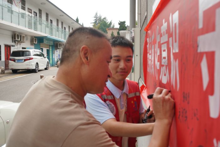 圖表2隊(duì)員邀請(qǐng)群眾在橫幅上簽名承諾