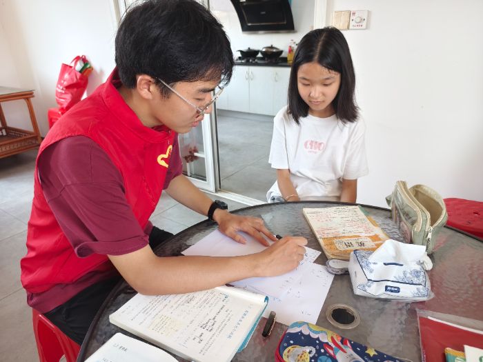 在輔導(dǎo)課上,志愿者們化身"知心哥哥姐姐"。面對(duì)復(fù)雜的數(shù)學(xué)題,他們用生活實(shí)例拆解抽象概念;講解英語(yǔ)語(yǔ)法時(shí),又編成趣味故事幫助理解。六年級(jí)的張思遠(yuǎn)原本數(shù)學(xué)成績(jī)不理想,在志愿者張浩威的耐心輔導(dǎo)下,終于攻克了困擾多時(shí)的幾何難題,臉上露出了久違的笑容。