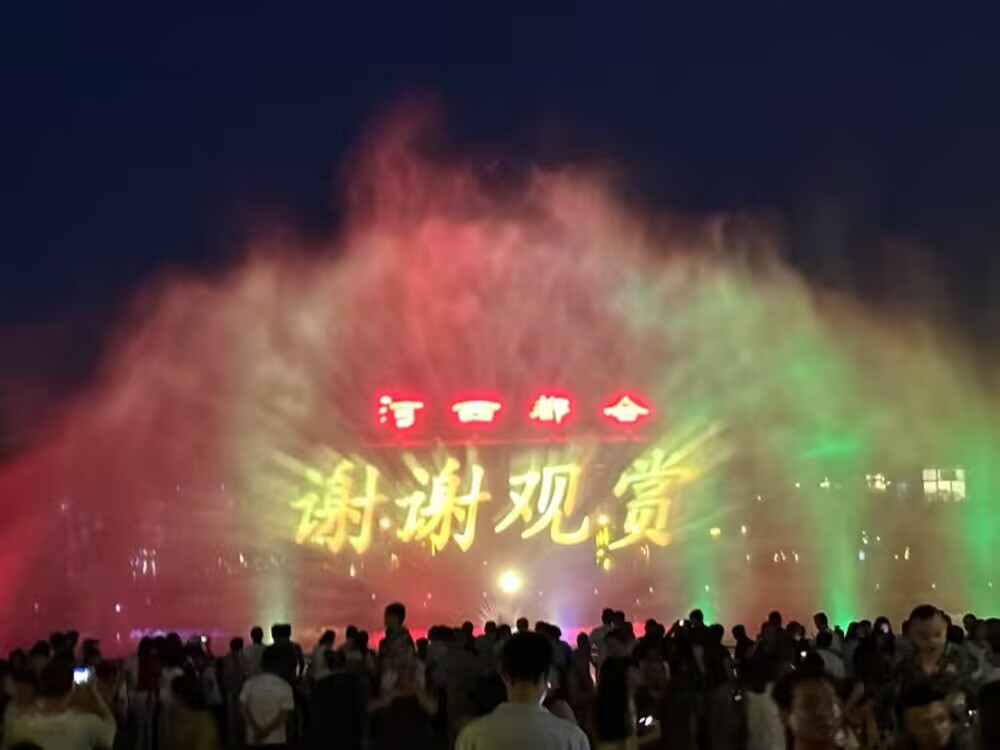 夜幕低垂,華燈初上,實(shí)踐團(tuán)滿懷期待地來(lái)到武威河西都會(huì),一場(chǎng)震撼人心的水舞燈光秀即將拉開(kāi)帷幕。隨著音樂(lè)響起,水幕電影如夢(mèng)似幻地展開(kāi),類(lèi)似3D的視覺(jué)效果讓人仿佛置身于另一個(gè)時(shí)空。