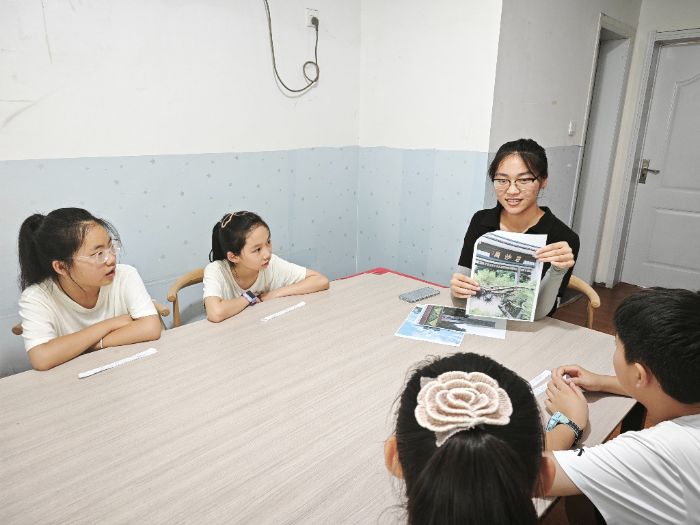 圖為實(shí)踐隊(duì)員了解英雄皮定均故事 陳苗攝