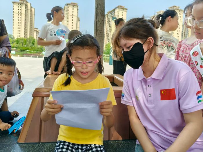 “我們用‘家’字來接龍吧,要說普通話哦!”隊(duì)員高睿拿出寫有基礎(chǔ)詞匯的卡片,率先說出“家人”,孩子們紛紛響應(yīng),“家庭”“家鄉(xiāng)”“家園”……接龍過程中,隊(duì)員們重點(diǎn)糾正“z/c/s”與“zh/ch/sh”的發(fā)音區(qū)別,當(dāng)10歲的琪琪清晰說出“樹上有只小鳥”時(shí),現(xiàn)場(chǎng)響起熱烈的掌聲。