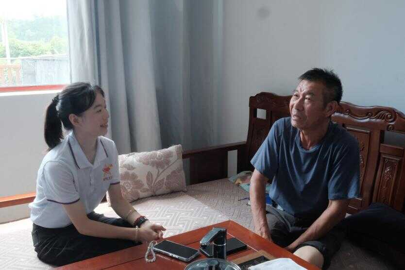 圖為團隊成員正在采訪退伍軍人謝爺爺。孫星宇 供圖