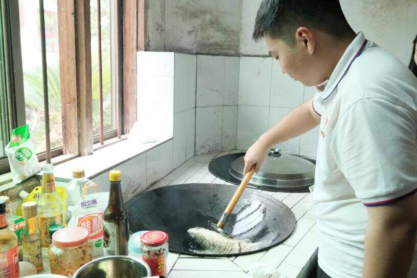 農(nóng)家灶前的“魚水情深” 煙火氣里看老區(qū)新貌“快嘗嘗這煙筍,自家后山采的!”馬源村村民謝爺爺熱情地將成員們迎進灶屋。柴火灶前,大家分工協(xié)作:洗切烹炒,添柴續(xù)火。炊煙裊裊中,一桌飽含情誼的農(nóng)家菜飄香出爐。