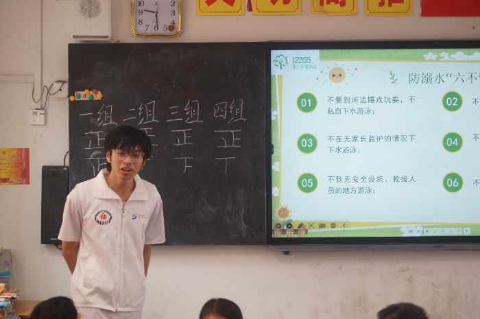 圖為老師分享防溺水知識+“籽籽同行”突擊隊攝