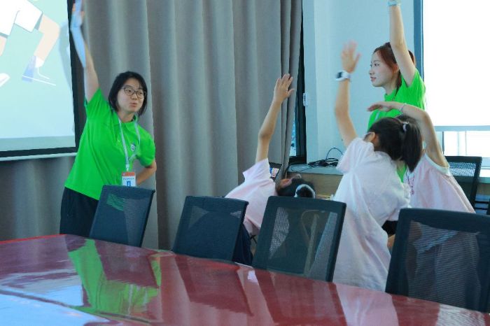 圖為實(shí)踐團(tuán)成員帶領(lǐng)孩子們做熱身運(yùn)動(dòng) 邵珥晴供圖