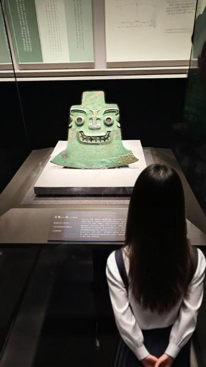 圖為實(shí)踐隊(duì)員參觀亞醜鉞 張靚穎供圖