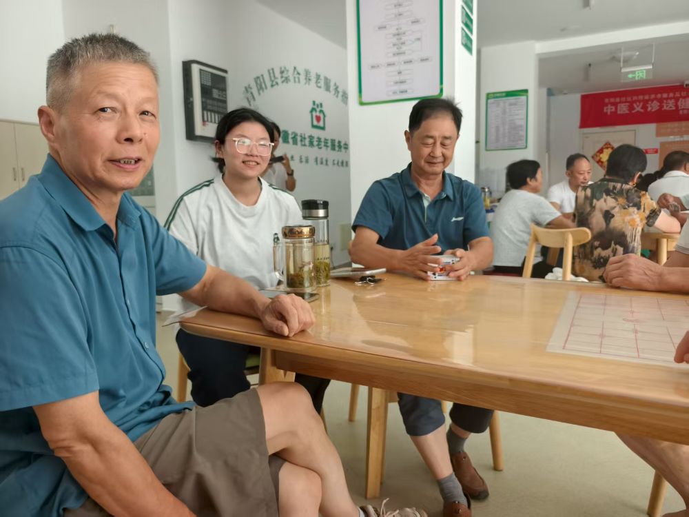 圖為隊(duì)員和打牌的老人們聊天 。陳楨祺 供圖