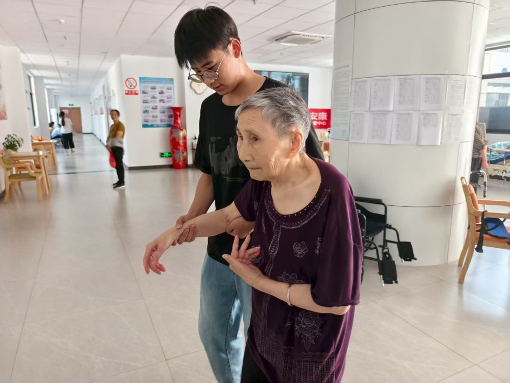 圖為隊(duì)員扶養(yǎng)老院老人活動(dòng)身體。陳楨祺 供圖