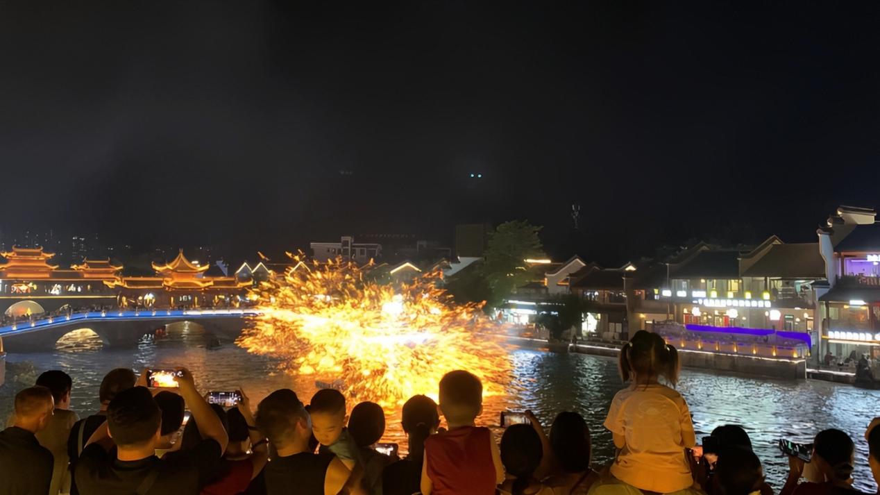 圖為實踐隊與群眾在太平古城參觀非遺文化技藝“打鐵花”。吳慧榕攝