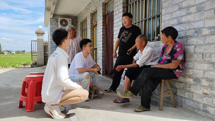 圖為實踐團(tuán)隊成員走訪萬富村百歲老人。彭誠旺供圖