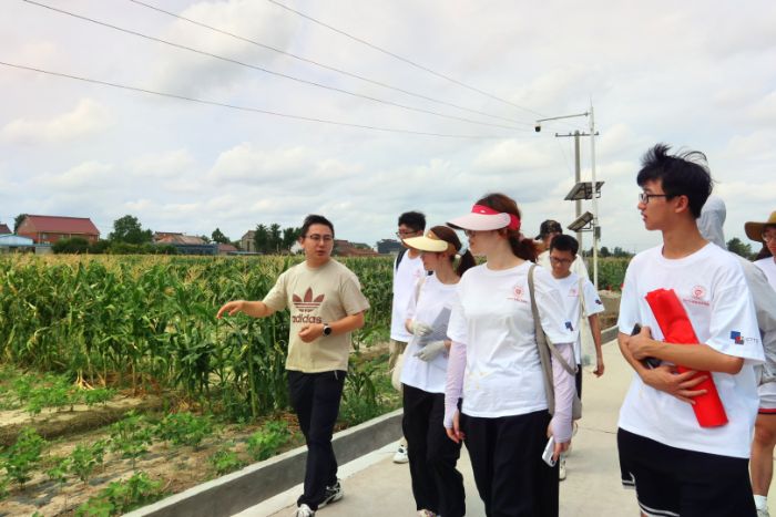 圖為實踐團(tuán)隊成員與白蒲鎮(zhèn)錢園村、合興村黨總支第一書記的合影。翟書暢供圖