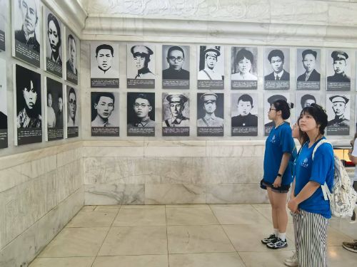 當(dāng)日上午,實踐隊到達(dá)人民英雄紀(jì)念陳列館。步入陳列館,實踐隊員們依次參觀學(xué)習(xí)了毛澤東同志題碑銘、手書題詞、烈士文抄以及蔡和森、夏明翰等90多位英雄先烈們的歷史照片和遺物。這些展品生動地再現(xiàn)了湖南人民在革命戰(zhàn)爭年代的英勇事跡和偉大精神,為隊員們理解湖南革命歷史提供了最直觀的教材。
