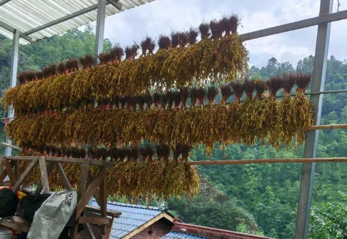 (圖為吉惹家門口曬著的豆子。吉惹進(jìn)去供圖)