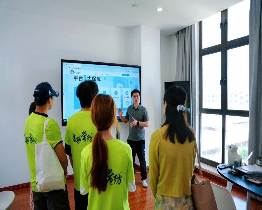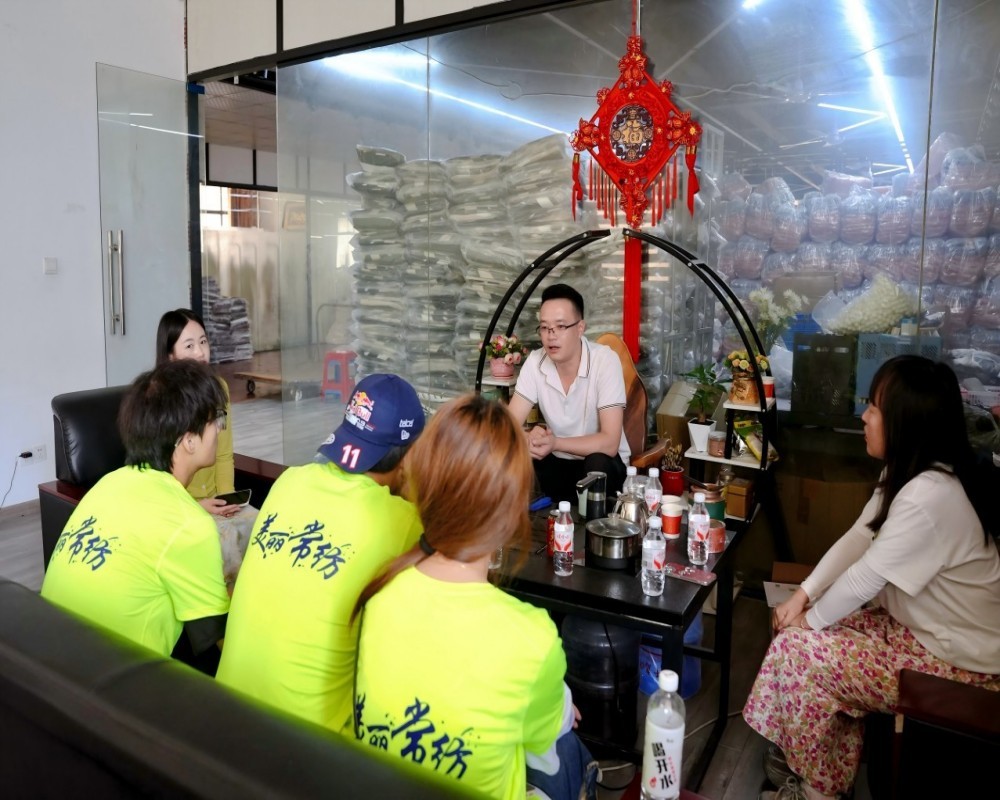 在洪合鎮(zhèn),團(tuán)隊走訪了網(wǎng)聯(lián)毛衫匯直播“共富工坊”、“毛衫派”全球毛衫一站式跨境采購平臺、金色年華針織科技有限公司等。在調(diào)研過程中,團(tuán)隊成員來到“毛衫派”AI工作室,在優(yōu)秀青年創(chuàng)業(yè)者顧寧錄的講解下,沉浸式感受這一傳統(tǒng)產(chǎn)業(yè)在新時代浪潮中激流勇進(jìn)、創(chuàng)新蝶變的蓬勃生機(jī),深入了解洪合毛衫產(chǎn)業(yè)在數(shù)字化轉(zhuǎn)型、跨境電商和共同富裕方面的創(chuàng)新實(shí)踐。