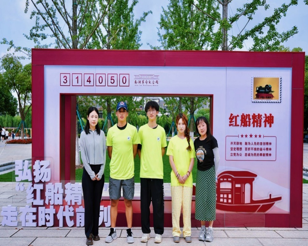 圖為團(tuán)隊成員參觀南湖革命紀(jì)念館