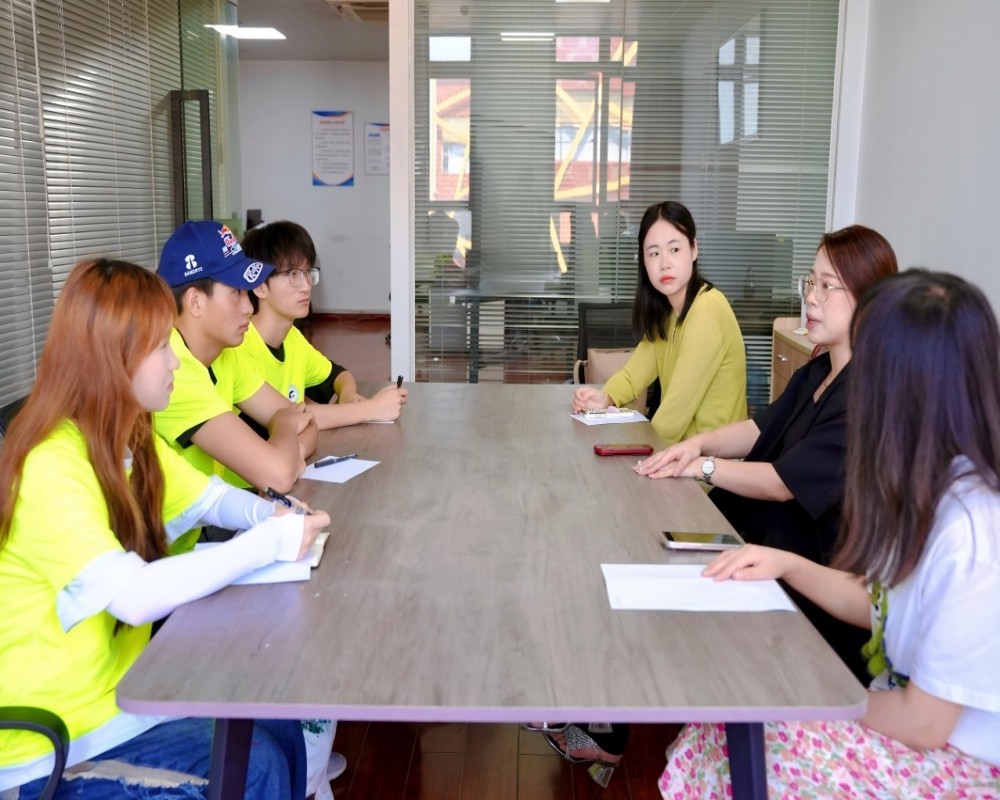 圖為團(tuán)隊成員訪談嘉興高緣蘭服飾有限公司總經(jīng)理張朝兵