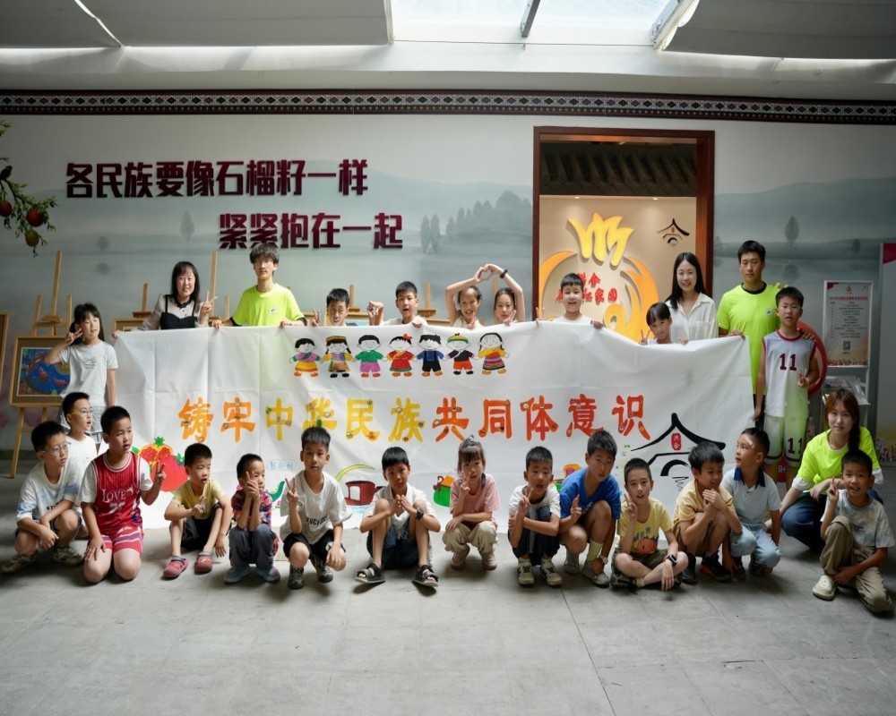 洪合鎮(zhèn)不僅擁有38個民族,更有一個響當(dāng)當(dāng)?shù)墓鈽s稱號:“全國民族團(tuán)結(jié)進(jìn)步示范區(qū)”。團(tuán)隊成員來到這里,在洪合石榴紅家園,加盟了洪合鎮(zhèn)第五屆“小石榴養(yǎng)成營”,團(tuán)隊來自青海的藏族同學(xué)杰哲在開營儀式上發(fā)言,深情感慨:“我從青海湖來到了西太湖又來到了南湖,最令我動容的是,這片土地上始終奔涌著‘千籽同根一家親’的精神血脈”。