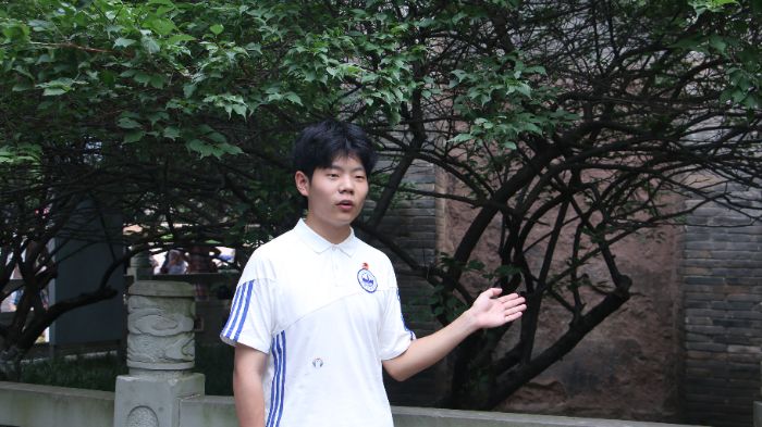 圖為初心隊導游為成員講解簡陽人民公園歷史文化成都東軟學院丁思琪攝