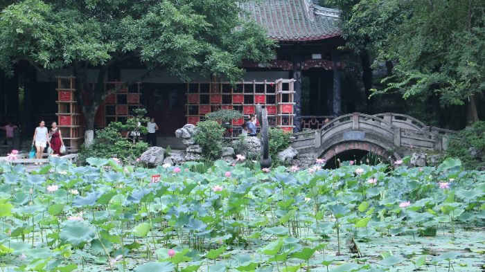 清晨的簡陽市人民公園內,古木蔥蘢,池塘中的荷花與亭臺樓閣相映成趣,勾勒出一幅鮮活的水墨寫意畫。隊員們漫步其間,聽導游講述公園百年變遷:從民國時期的公共空間到如今的城市綠肺,這里不僅承載著幾代簡陽人的休閑記憶,更藏著城市發(fā)展的微觀縮影。長廊上的斑駁刻字、老茶鋪里的裊裊茶香,都成為隊員們記錄在文化記憶里的“歷史符號”。