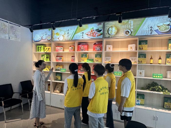 實踐團隊首站來到中國郵政六合區(qū)農(nóng)村電商服務(wù)中心。步入中心,六合特色農(nóng)產(chǎn)品琳瑯滿目,深深吸引了師生們的目光。指導(dǎo)老師現(xiàn)場講解指出,六合郵政分公司通過整合郵政系統(tǒng)的各類資源的同時,發(fā)展了特色電商平臺,形成區(qū)域內(nèi)物流全覆蓋,實現(xiàn)“網(wǎng)貨下鄉(xiāng)”、“農(nóng)產(chǎn)品進(jìn)城”雙流通,為農(nóng)戶拓寬銷售渠道、降低物流成本、增加經(jīng)營收入的同時,也方便了消費者便捷選購優(yōu)質(zhì)農(nóng)產(chǎn)品、享受城鄉(xiāng)同質(zhì)同價服務(wù)、參與助農(nóng)公益行動。