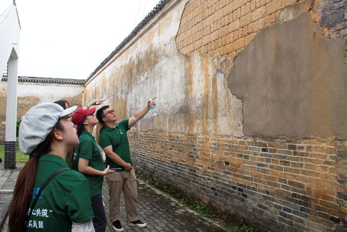 圖為實(shí)踐團(tuán)老師和成員討論修復(fù)后的墻體。林曉峰供圖