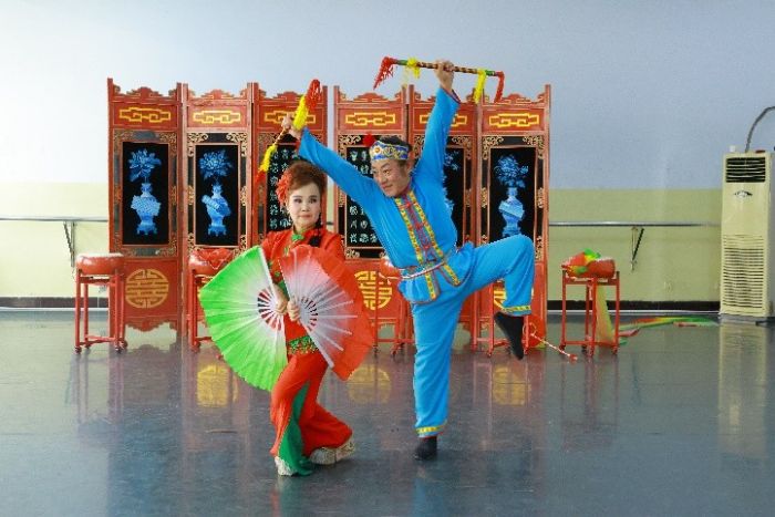 圖為李月琴老師和搭檔王老師展示二人臺 陳靜涵攝