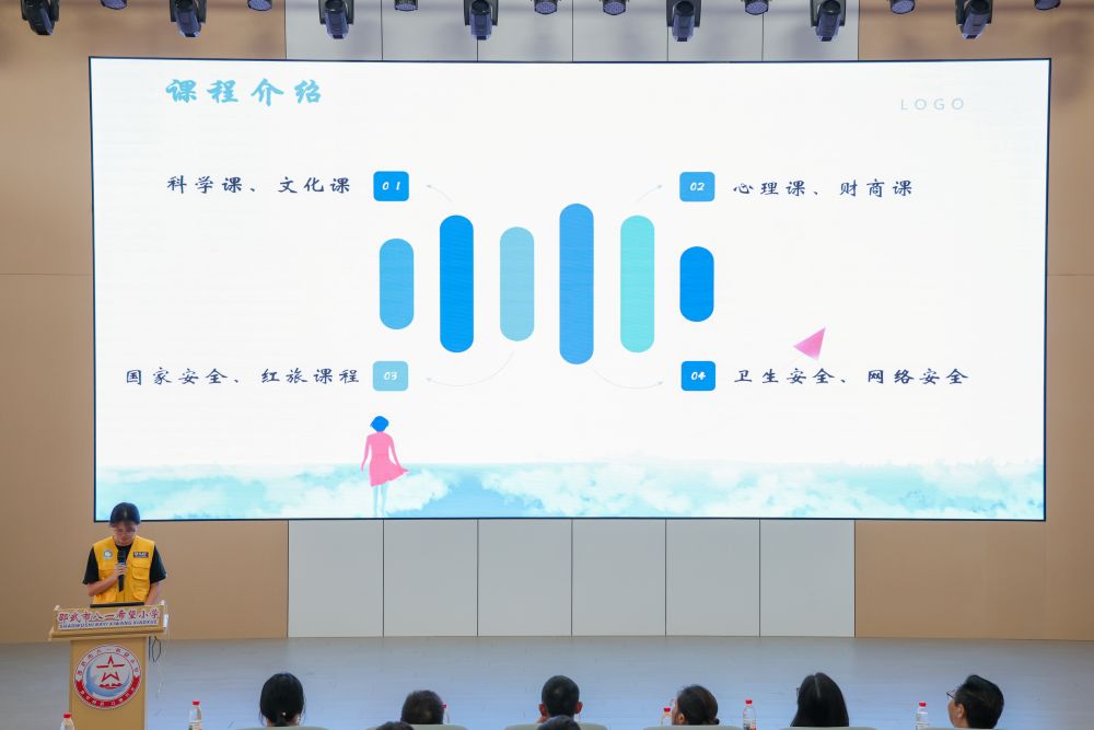 副校長張世賢致辭結(jié)束后,廈門大學(xué)嘉庚學(xué)院會計與金融學(xué)院青年志愿者隊隊長陳樂彤上臺,詳細(xì)介紹了此次夏令營的課程規(guī)劃。她表示,本次暑期興趣課程班將以嘉庚精神中“忠、公、儉、誠、毅”的豐富內(nèi)涵為引領(lǐng),精心設(shè)置科學(xué)探秘、文化浸潤、心理護(hù)航、財商啟蒙、國家安全、紅旅課程、衛(wèi)生防護(hù)、網(wǎng)絡(luò)安全八大主題課程。課程將在拓展課外知識的基礎(chǔ)上,融入趣味實驗、互動游戲、實踐體驗等多元形式,讓孩子們在輕松愉快的氛圍中拓寬視野、收獲知識,度過一段充實而有意義的時光。