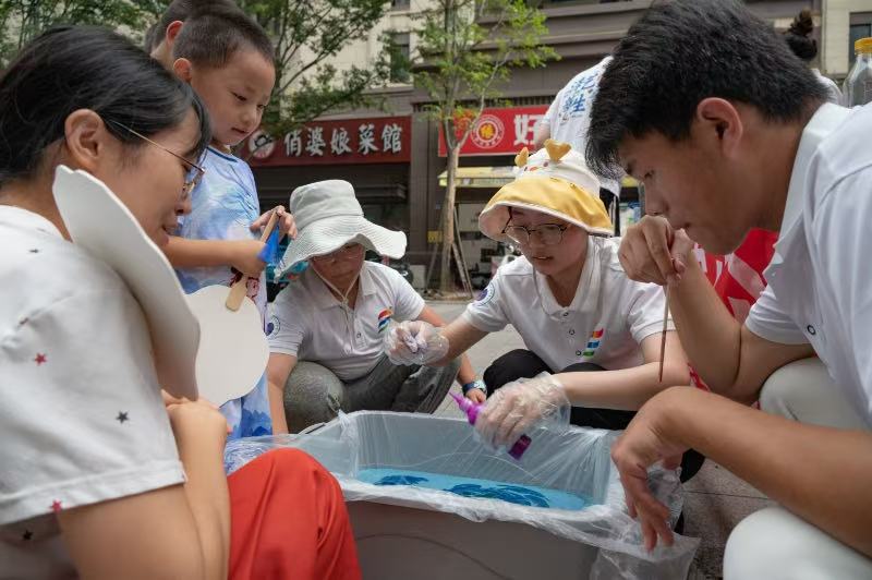 為提升互動(dòng)體驗(yàn),義賣攤位還設(shè)有簡易非遺手工體驗(yàn)角。實(shí)踐團(tuán)成員邀請居民動(dòng)手體驗(yàn)漆扇和漆包的繪制與花紋設(shè)計(jì),在指導(dǎo)過程中同步講解非遺知識(shí),讓更多人了解這場公益活動(dòng)背后的文化價(jià)值與溫暖初心。