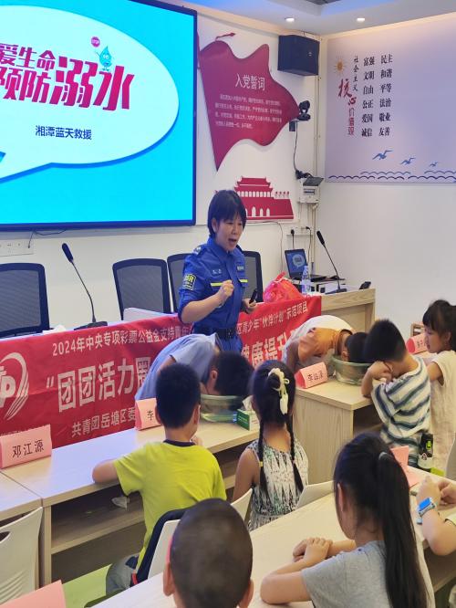為增強暑期青少年的防溺水安全意識,下午,由“童心映湘·劇燃紅魂”志愿服務(wù)隊邀請到的湘潭藍天救援隊走進長塘社區(qū),開展了一場主題為“珍愛生命,預(yù)防溺水”的安全教育活動。救援隊員采用互動提問的方式,巧妙引出游泳“十不準”原則,結(jié)合真實溺水案例,用通俗易懂的語言深入剖析溺水的危害性,讓孩子們深刻認識到防溺水的重要性。
