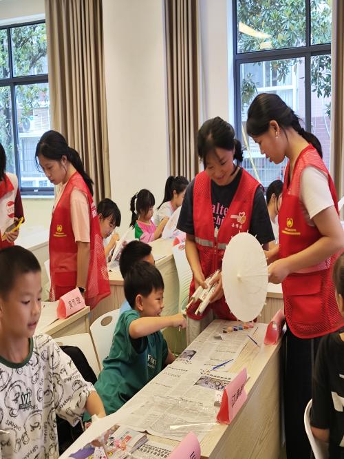 7月9日,湘潭大學(xué)“童心映湘·劇燃紅魂”志愿服務(wù)隊走進(jìn)湘潭市寶塔街道長塘社區(qū),開展作業(yè)輔導(dǎo)、圍棋課堂及非遺油紙傘DIY等系列活動,豐富青少年暑期生活,解決家長“看護(hù)難”問題。