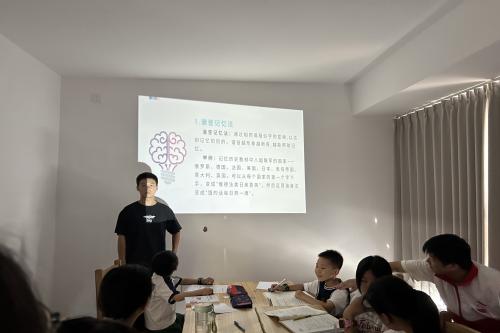 圖為團(tuán)隊(duì)成員為孩子們舉例講解記憶方法