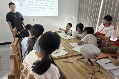 “八國(guó)聯(lián)軍國(guó)家難記?試試‘餓的話每日熬一鷹’!”志愿者在介紹科學(xué)記憶法時(shí)巧妙地將“俄德法美日奧意英”轉(zhuǎn)化為形象諧音,瞬間點(diǎn)燃了孩子們的興趣,孩子們爭(zhēng)相模仿,用自創(chuàng)諧音攻克學(xué)習(xí)難點(diǎn)。歷史知識(shí)點(diǎn)在笑聲中化作生動(dòng)畫面,枯燥背誦在“諧音記憶法”的魔法下也變成了朗朗上口的趣味游戲。