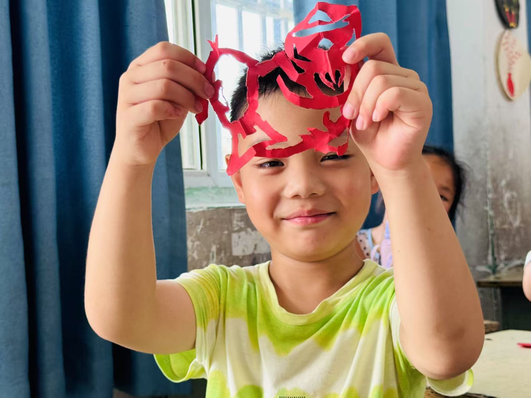 指尖的紅紙?jiān)诩舻断铝鬓D(zhuǎn),當(dāng)“皇藏峪”的輪廓從模糊到清晰,我忽然讀懂了蕭縣剪紙里藏著的鄉(xiāng)土密碼。這個(gè)夏天,作為南京審計(jì)大學(xué)“螢火”支教團(tuán)的一員,我在安徽蕭縣的剪紙課堂上,不僅見證了非遺傳承的溫度,更觸摸到了教育與成長的肌理。