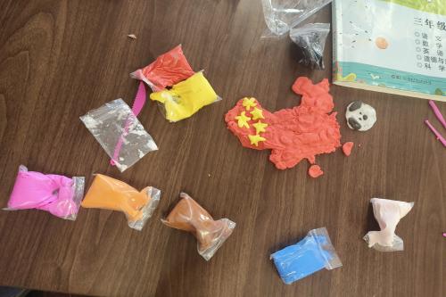 上午十點(diǎn)十五分,一場別開生面的創(chuàng)造在指尖上演。在志愿者的引導(dǎo)下,孩子們手中的彩泥不再是簡單的冰箱貼材料,而成為致敬英雄、銘刻山河的載體。在掌握了基礎(chǔ)技法后,孩子們的想象力如星火燎原。他們不僅制作出了很多可愛的卡通造型,更將觀影后的澎湃心潮傾注于創(chuàng)作——有的精心捏塑出雄赳赳的志愿軍戰(zhàn)士形象,復(fù)刻銀幕上的英雄瞬間;有的以斑斕彩泥精心構(gòu)筑起960萬平方公里的壯麗版圖,稚嫩的指尖撫過“中國地圖”的每一寸疆域;還有的將象征勝利的紅星與長城巧妙結(jié)合。原本輕松的手工課,因紅色精神的深度融入,演變?yōu)橐粓龀两降?ldquo;歷史重現(xiàn)”,孩子們以親手塑造的英雄與山河,完成了一場無聲卻深刻的愛國宣誓。