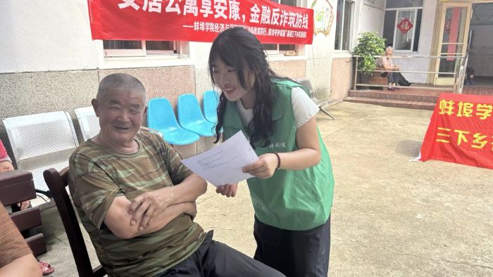 7月3日,蚌埠學(xué)院經(jīng)濟(jì)與管理學(xué)院暑期“三下鄉(xiāng)”社會(huì)實(shí)踐團(tuán)隊(duì)“財(cái)商教育同行,防詐守護(hù)家園”走進(jìn)龍湖保健老年公寓,為提高老年人金融安全意識(shí),開展了以“安居公寓享安康,金融反詐筑防線”為主題的實(shí)踐活動(dòng)。此次活動(dòng)以豐富多樣的形式,為老人們帶來了一場(chǎng)生動(dòng)實(shí)用的金融知識(shí)科普課。活動(dòng)一開始,活動(dòng)成員向老年公寓的老人們致以誠摯問候,對(duì)老人們積極參與活動(dòng)表示熱烈歡迎。現(xiàn)場(chǎng)氛圍溫馨融洽,迅速拉近了與老人們的距離。