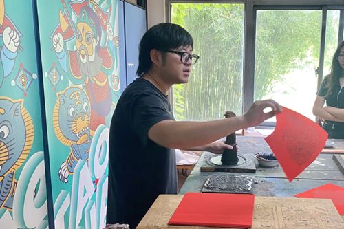 (圖為研究所老師年畫制作示范)