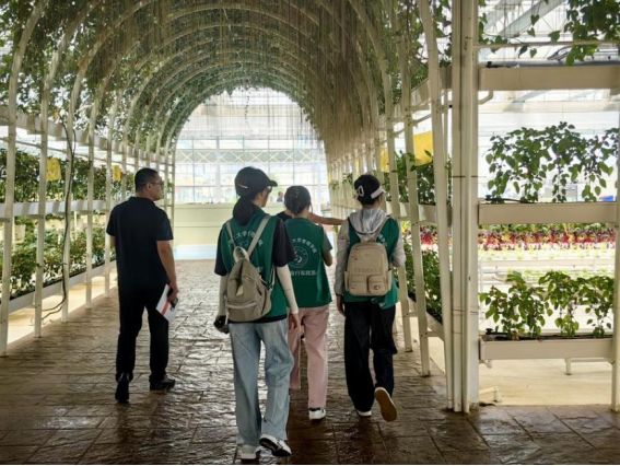 濰坊 7月21日電(通訊員吳怡坤)為響應(yīng)國家“發(fā)展農(nóng)業(yè)新質(zhì)生產(chǎn)力”號召,深入調(diào)研數(shù)字技術(shù)驅(qū)動鄉(xiāng)村產(chǎn)業(yè)振興的實踐模式,7月21日,山東理工大學(xué)一路前行實踐團走進(jìn)前往山東省濰坊市壽光市開展暑期“三下鄉(xiāng)”社會實踐活動,探索壽光智慧蔬菜產(chǎn)業(yè)的核心數(shù)字化技術(shù)和壽光蔬菜模式的發(fā)展路徑。7月21日上午由隊長張藝錦帶領(lǐng),線下成員全部參加,進(jìn)行紀(jì)都現(xiàn)代農(nóng)業(yè)共富產(chǎn)業(yè)園的實地參觀與調(diào)查,深入探索現(xiàn)代農(nóng)業(yè)的發(fā)展技術(shù)和數(shù)字技術(shù)在現(xiàn)代農(nóng)業(yè)中的運用。