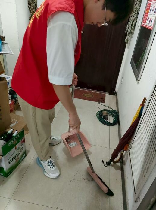 文瀾青行團(tuán)小隊(duì)成員在清掃居民門口的垃圾王藝洋供圖