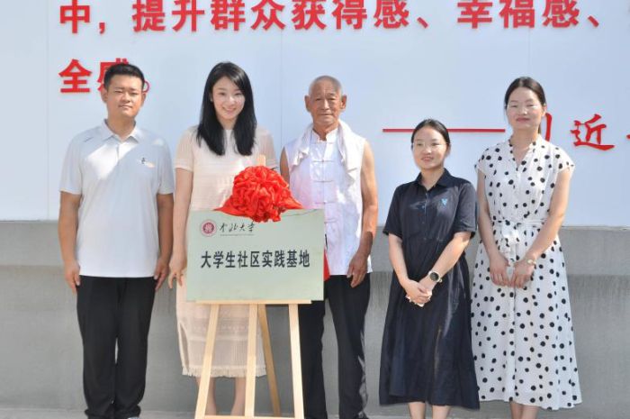 圖為指導老師買璐璐與翼城縣領導為“大學生社區(qū)實踐基地”揭牌(蘭甜馨攝)